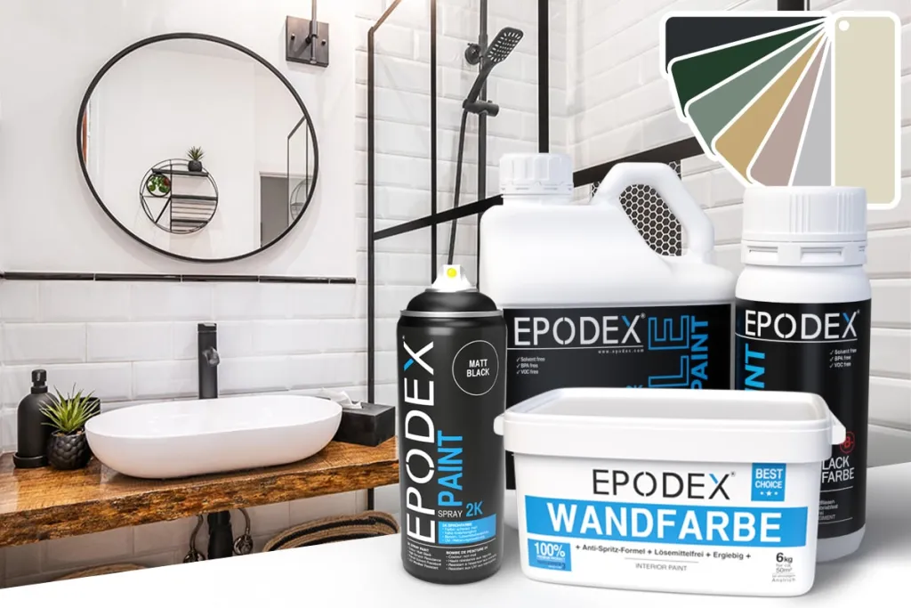مع EPODEX Tile Paint، أنت تختار جودة عالية بتكلفة منخفضة. سواء كان طلاء بلاط 1K لبلاط الجدران المعرض للاستخدام العادي أو طلاء بلاط 2K لبلاط الجدران والأرضيات المعرض للاستخدام الشديد – نحن نقدم لك مجموعة واسعة من الألوان والإكسسوارات المتناسقة بنقرة واحدة.
