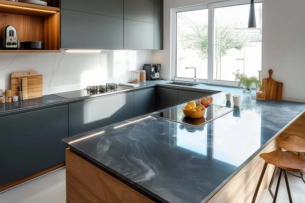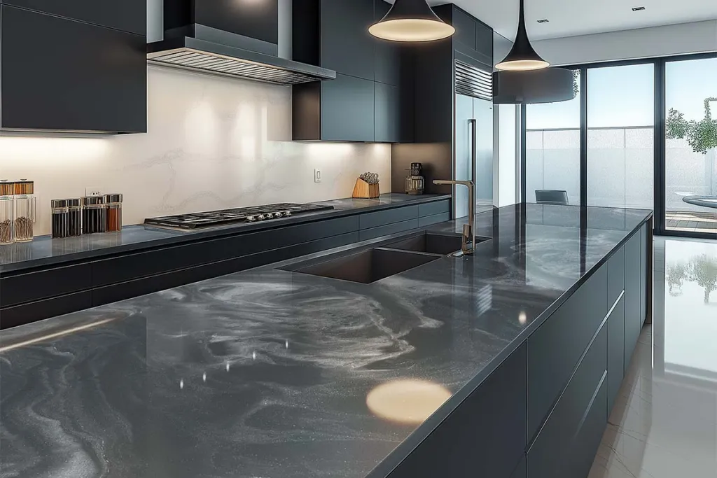 راتنج إبوكسي لأسطح الطاولات، أسطح العمل والأسطح الأخرى - رمادي حديدي و أبيض لؤلؤي معدني