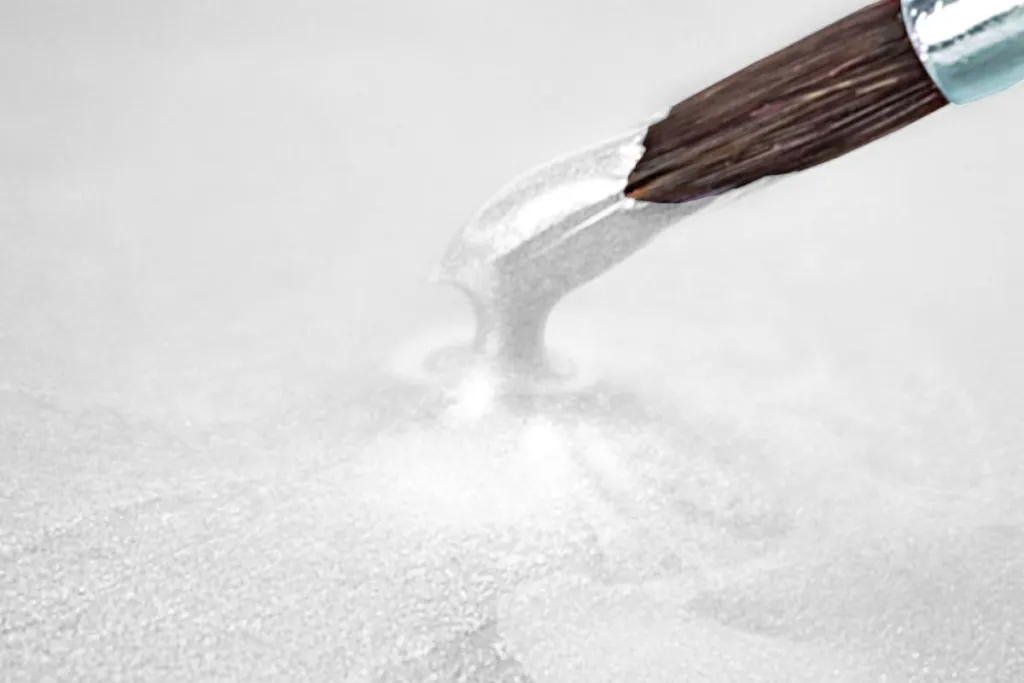 - ابدأ دائماً ببرايمر من راتنج الإيبوكسي لتجنب فقدان مادة كبير وتكوّن نفطات (سُمك الطبقة: 0,2-0,5mm). للقيام بذلك، استخدم ببساطة جزءاً من نفس راتنج الإيبوكسي الشفاف. اخلط مكوِّن الراتنج A مع مكوِّن المصلب B بنسبة 2:1 (مثال: 2kg راتنج: 1kg مصلب).