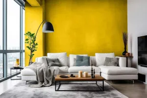 مركب تسوية زخرفي بمظهر الخرسانة. بديل اقتصادي للميكروسيمنت. مثالي للشقق المؤجرة لأنه سهل الصنفرة والدهان لاحقًا.