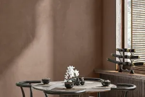 مركب تسوية زخرفي بمظهر الخرسانة. بديل اقتصادي للميكروسيمنت. مثالي للشقق المؤجرة لأنه سهل الصنفرة والدهان لاحقًا.