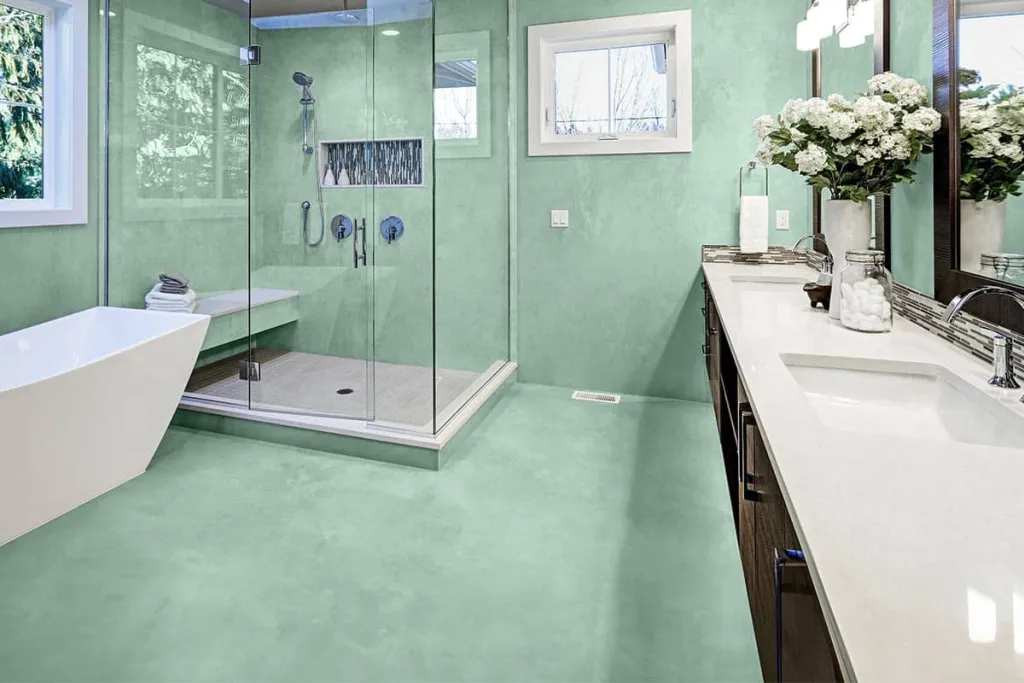 ملاحظة: بالنسبة للغرف الرطبة، والأسطح التي تتعرض لملامسة مباشرة مع الماء، والأسطح ذات الاستخدام المكثف (إجهاد ميكانيكي عالي، التنظيف بمواد تنظيف قوية، إلخ)، نوصي بختم السطح براتنج البولي يوريثان EPODEX (PU resin) بلمعان مطفي أو لامع.