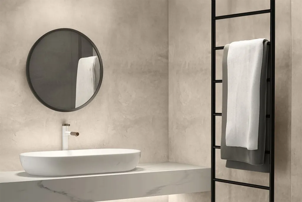 ميكروسيمنت عالي الجودة لجميع أنواع البلاط الداخلي والخارجي. لبلاط الجدران وبلاط الأرضيات في المطابخ والحمامات والممرات والمزيد.