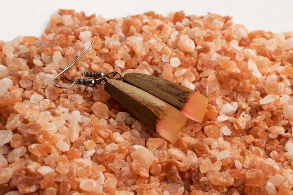 Jewellery made of wood features a natural look. The combination of coloured epoxy resin with woods such as cherry or pine is particularly popular. To treat wood with epoxy resin and make jewellery from it, put pieces of wood in a silicone mould and then add the liquid resin. When the casting has cured, sand it into shape until you have reached the desired result. Then simply drill a hole in the jewellery and use it as a pendant for necklaces or earrings.