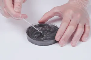 - Stir through the edge and bottom of the mixing cup as the material will settle there. Ideally, pour into a clean mixing cup and mix again until the mixture is streak-free. This ensures that the resin A-component and hardener B-component are completely mixed together.