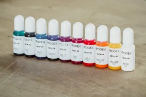EPODEX drop-in dyes can create semi-transparent colours. Every 10g bottle is equipped with a droplet dispenser for ease of use. All drop-in colours follow the law of colour theory and can be mixed with each other (e.g. yellow and blue create green).