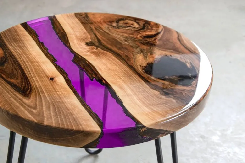 Mix the dyes with the A-component resin or with the resin-hardener mixture. Recommendation for maximum colour intensity: 60 drops or 1,8g purple dye on 1kg resin + hardener. Adjust the colour intensity individually by adding more or less colour pigments.